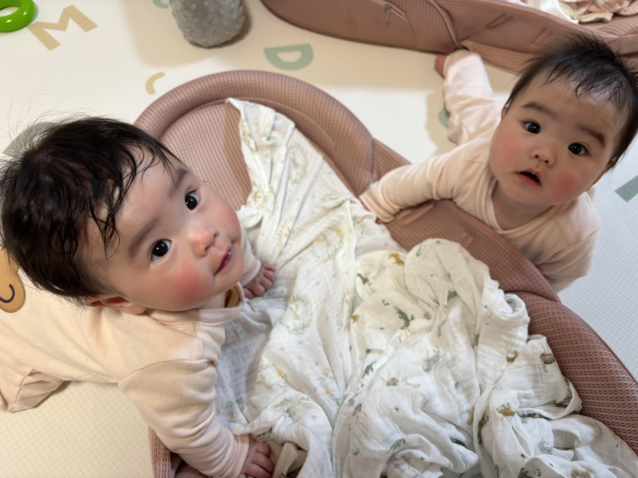 離乳食を始めて1ヵ月…!双子は”食べる”という行為に慣れてきた様子!