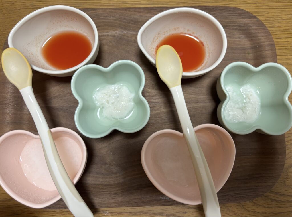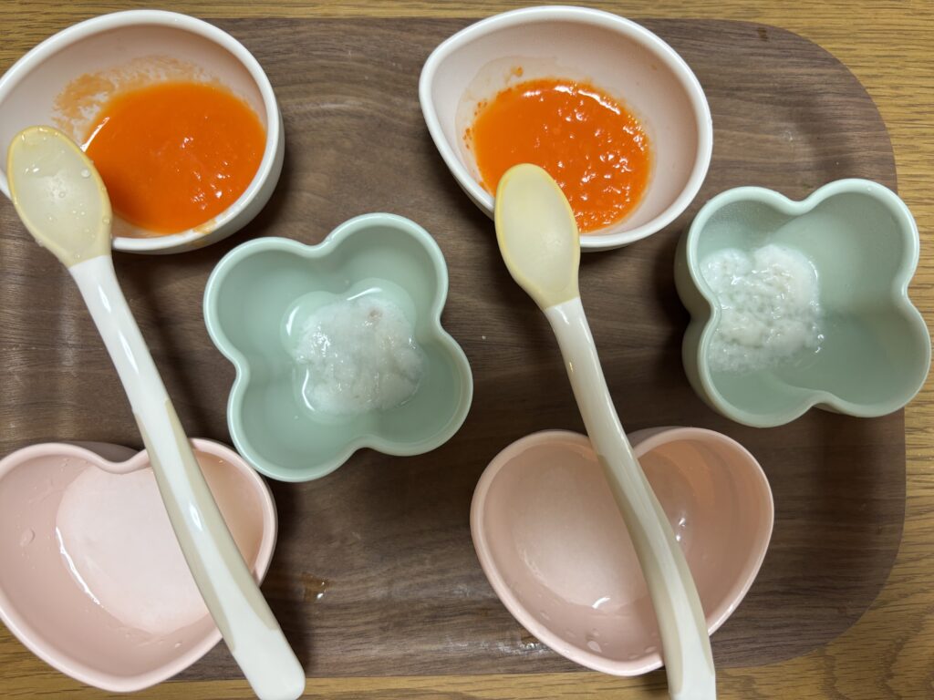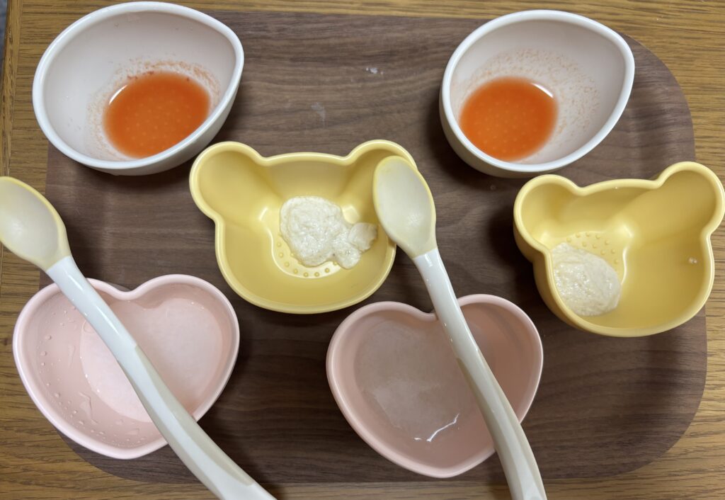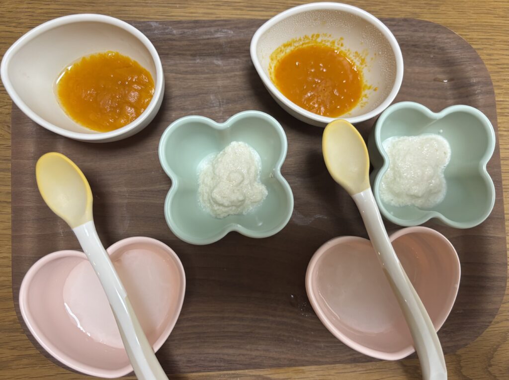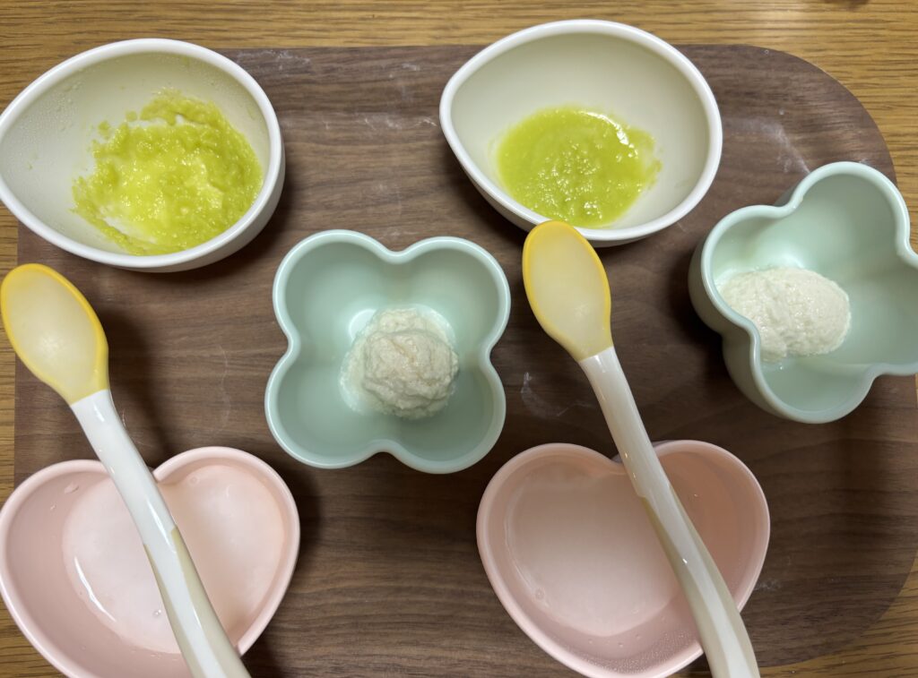 今回は離乳食初期(ごっくん期)の前半、3~4週目に新しく食べ始めた離乳食のレシピと写真を載せたいと思います。