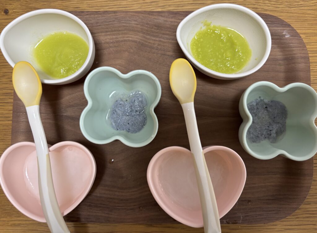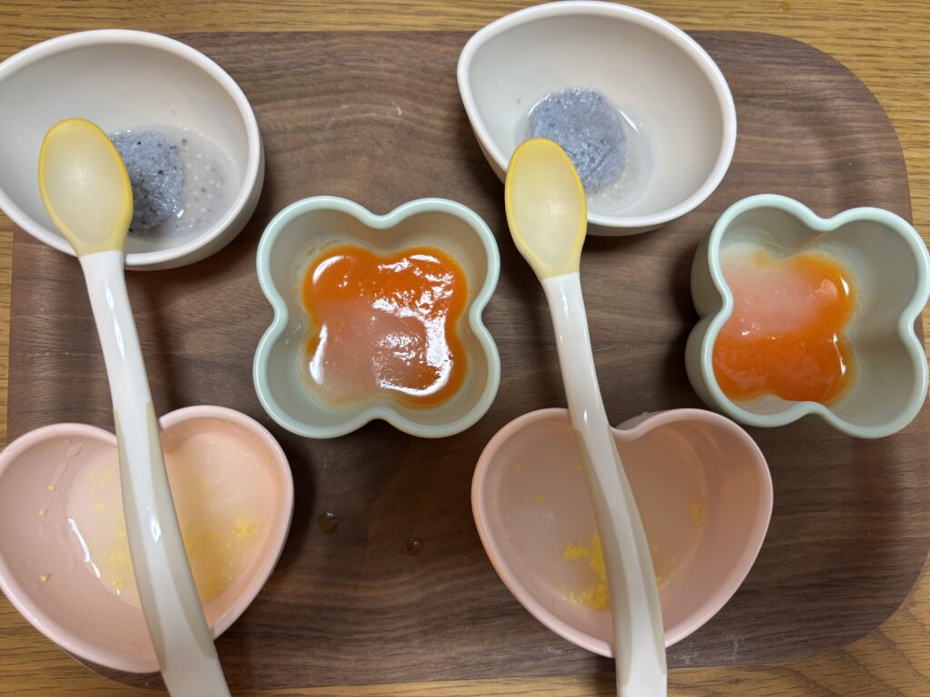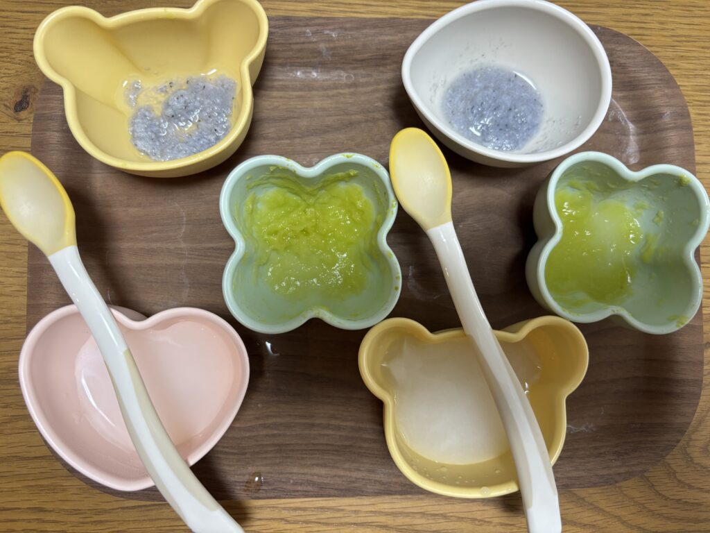新しい食べ物の離乳食づくりと、前から食べているストックの補充でてんやわんやでした。